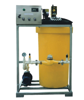 單泵單控式自動加藥裝置是由一個計量箱、一臺計量泵、連接管路、閥門、底座等組成,是計量加藥設(shè)備是最為簡單的,加藥控制是由計量泵自身來控制。