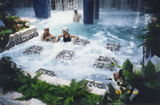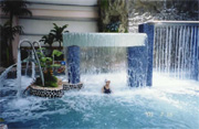 瀑布浴 以動力式瀑布均壓槽形成流瀑,沖擊上半身,進行頭、肩、頸、背等部位之按摩保養。 |