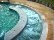 漩渦噴頭 將圓形水池的水旋轉成渦流,可供三人坐于池內休息,池水從身體前后摩擦而過,產生表面及側部按摩效果。亦可采逆走方式進行,增強下半身肌力,兼具瘦身消脂作用。輕松筋骨,活化肌膚,消除疲勞。