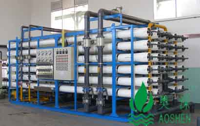 1、原水罐 (可選) 儲存原水,用于沉淀水中的大泥沙顆粒及其它可沉淀物質(zhì)。同時(shí)緩沖原水管中水壓不穩(wěn)定對水處理系統(tǒng)造成的沖擊。(如水壓過低或過高引起的壓力傳感的反應(yīng))。 2、原水泵 恒定系統(tǒng)供水壓力,穩(wěn)定供水量,確保原水經(jīng)過前面砂濾、炭濾、軟化罐后還有足夠的水量和水壓,供給高壓泵工作。 3、石英砂過濾器 采用多次過濾層的過濾器,主要目的是去除原水中含有的泥沙、鐵銹、膠體物質(zhì)、懸浮物等顆粒在20um以上的物質(zhì),可選用手動(dòng)閥門控制或者全自動(dòng)控制器進(jìn)行反沖洗、正沖洗等一系列操作。保證設(shè)備的產(chǎn)水質(zhì)量,延長設(shè)備的使用壽命。 4、活性炭過濾器 系統(tǒng)采用果殼或椰殼活性炭過濾器,活性炭不但可吸附電解質(zhì)離子,還可進(jìn)行離子交換吸附。經(jīng)活性炭吸附還可使高錳酸鉀耗氧量(COD)由15mg/L(O2)降至2~7mg/L(O2),此外,由于吸附作用使表面被吸附復(fù)制的濃度增加,因而還起到催化作用、去除水中的色素、異味、大量生化有機(jī)物、降低水的余氯值及農(nóng)藥污染物和除去水中的三鹵化物(THM)以及其它的污染物?蛇x用手動(dòng)閥門控制或者全自動(dòng)控制器進(jìn)行反沖洗、正沖洗等一系列操作。保證設(shè)備的產(chǎn)水質(zhì)量,延長設(shè)備的使用壽命。同時(shí),設(shè)備具有自我維護(hù)系統(tǒng),運(yùn)行費(fèi)用很低。 5、離子軟化系統(tǒng)/加藥系統(tǒng) R/O裝置為了溶解固體形物的濃縮排放和淡水的利用,為防止?jié)馑颂貏e是RO裝置最后一根膜組件濃水側(cè)出現(xiàn)CaCO3,MgCO3,MgSO4,CaSO4,BaSO4, SrSO4, SiSO4的濃度積大于其平衡溶解度常數(shù)而結(jié)晶析出,損壞膜原件的應(yīng)有特性 ,在進(jìn)入反滲透膜組件之前,應(yīng)使用離子軟化裝置或投放適量的阻垢劑阻止碳酸鹽, SiO2,硫酸鹽的晶體析出。 6、精密(保安)過濾器 采用精密過濾器對進(jìn)水中殘留的懸浮物、非曲直粒物及膠體等物質(zhì)去除,使RO系統(tǒng)等后續(xù)設(shè)備運(yùn)行更安全、更可靠。濾芯為5um熔噴濾芯、目的防止上級過濾單元,漏掉的大于5um的雜質(zhì)除去。防止進(jìn)入反滲透裝置損壞膜的表面,從而損壞膜的脫鹽性能。