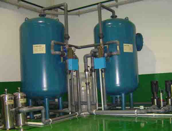 4、源水(箱)→源水加壓泵→機械過濾器→活性炭過濾器→陽離子交換軟化