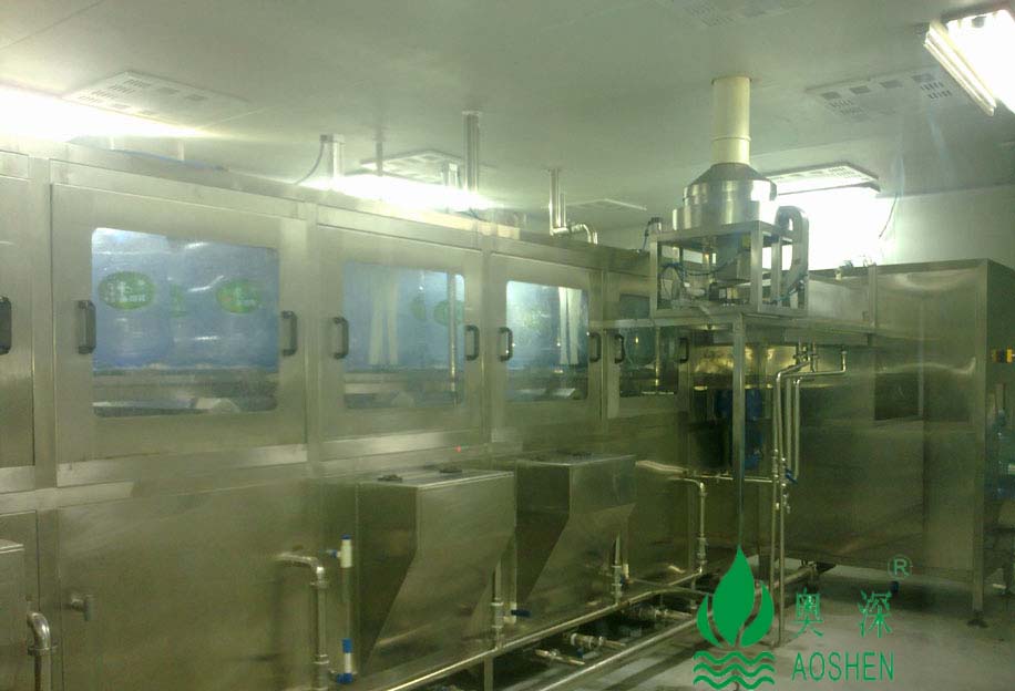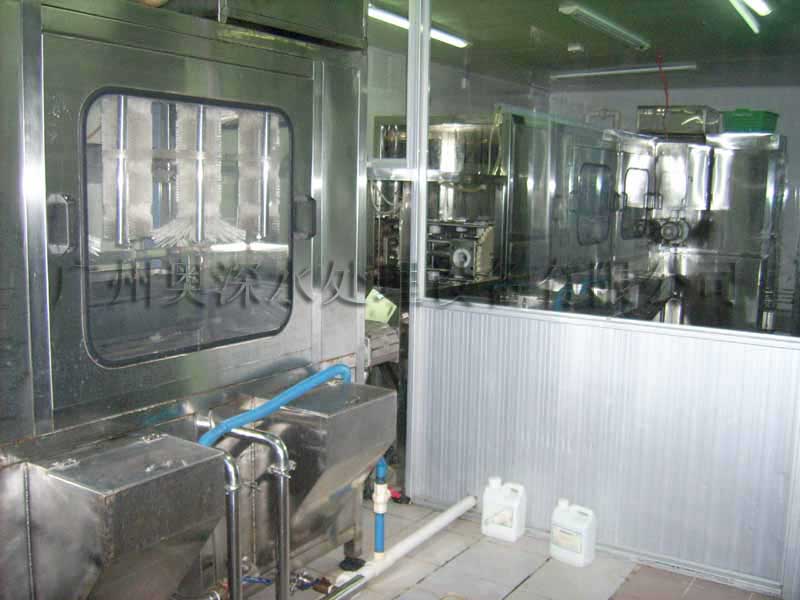 原水箱→原水泵→機械過濾器→活性炭過濾器→軟水器→保安過濾器→超濾裝置→產品水箱→輸送泵→紫外線殺菌器→灌裝線 |